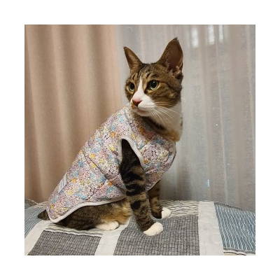 애견 레트로 꽃무늬 패딩 할매 김장 조끼 목도리 셋트 > 패션용품